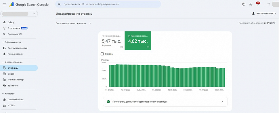 - Google Search Console: раздел Страницы и Индексирование страниц показывает, сколько страниц Google сканирует ежедневно и среднюю скорость.