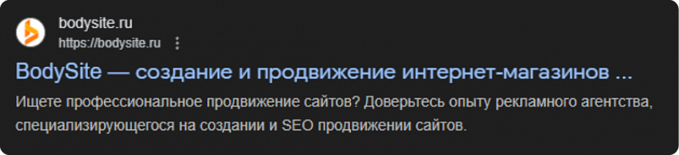 Сниппет — это карточка ресурса в поисковой выдаче: заголовок (title), адрес (URL) и короткое описание (meta description). Поисковики иногда расширяют сниппет: добавляют цену, рейтинг, контактную информацию и другие элементы . Сниппет может влиять на то, кликнут ли на результат, а значит, сколько трафика придет без дополнительных затрат на рекламу.