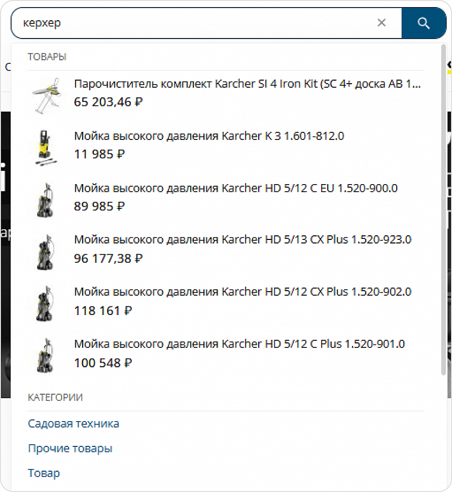 Получите результаты еще до того, как закончите вводить запрос. Скорость поиска возрастает в разы, даже если у вас сотни тысяч товаров.