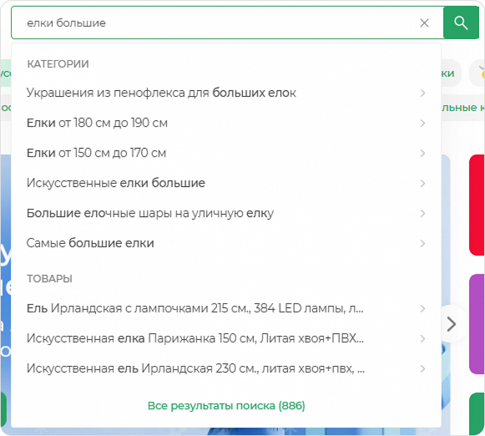 2. Проблема: Поиск по SEO-фильтрам "елки большие"