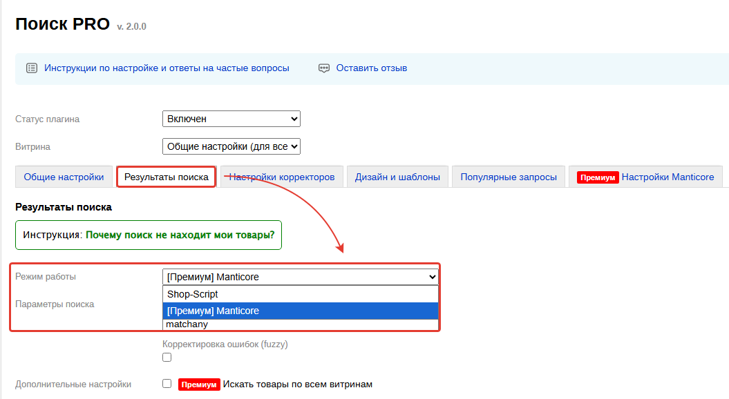 Если у вас несколько витрин и на каждой витрине отображаются свои товары, то можете включить поиск товаров по всем витринам