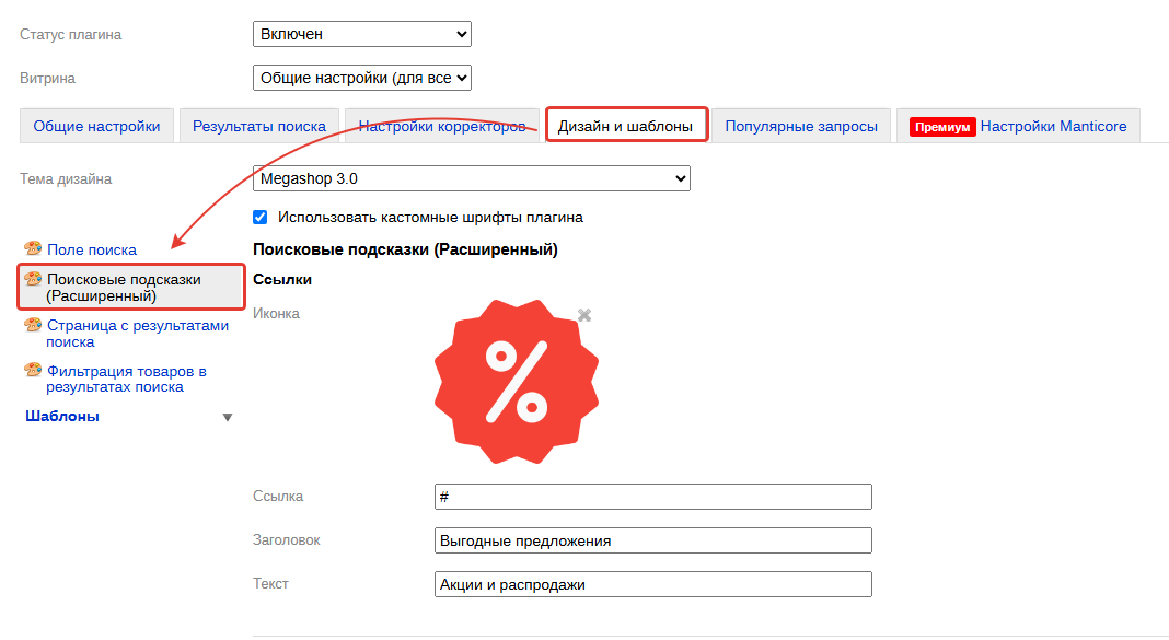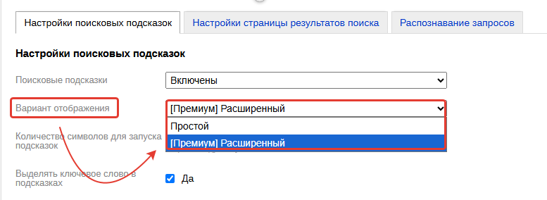 В премиум версии можно выбрать новый расширенный дропдаун на внешней части сайта при вводе поискового запроса