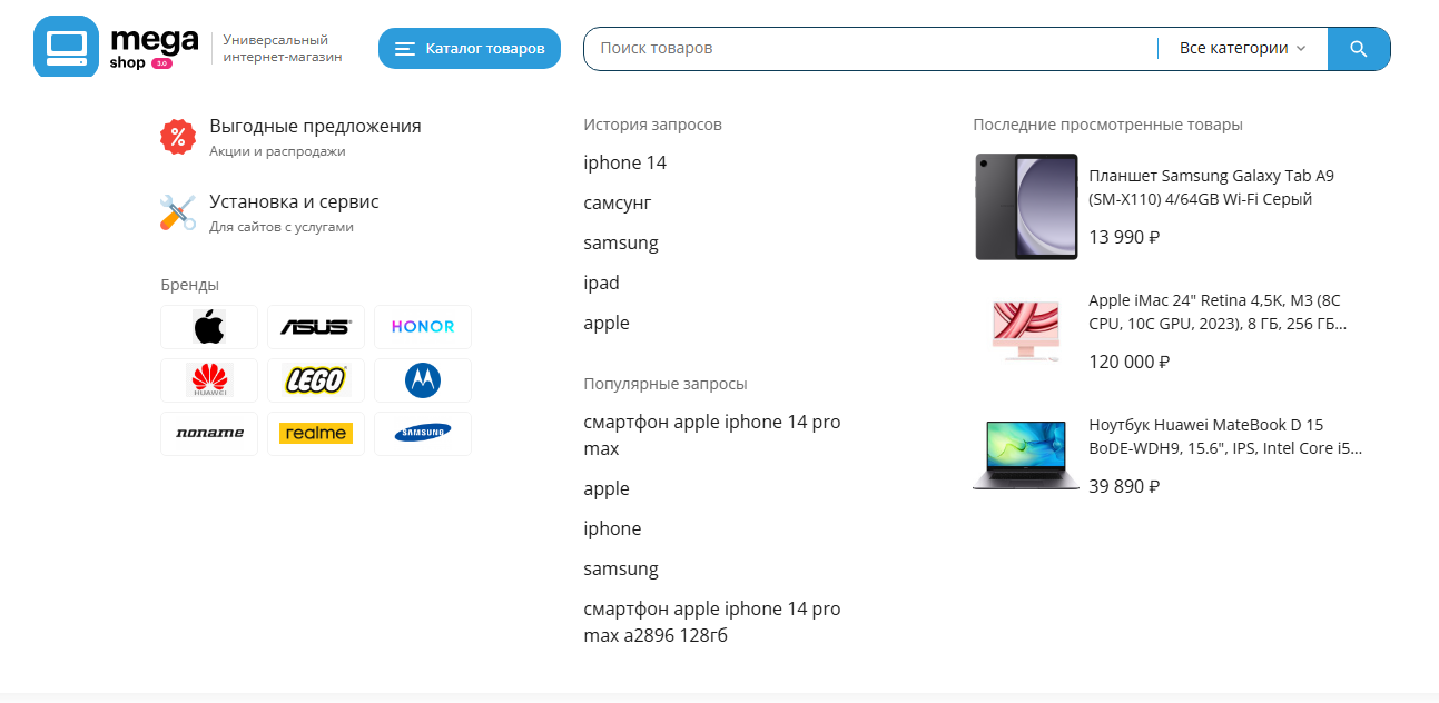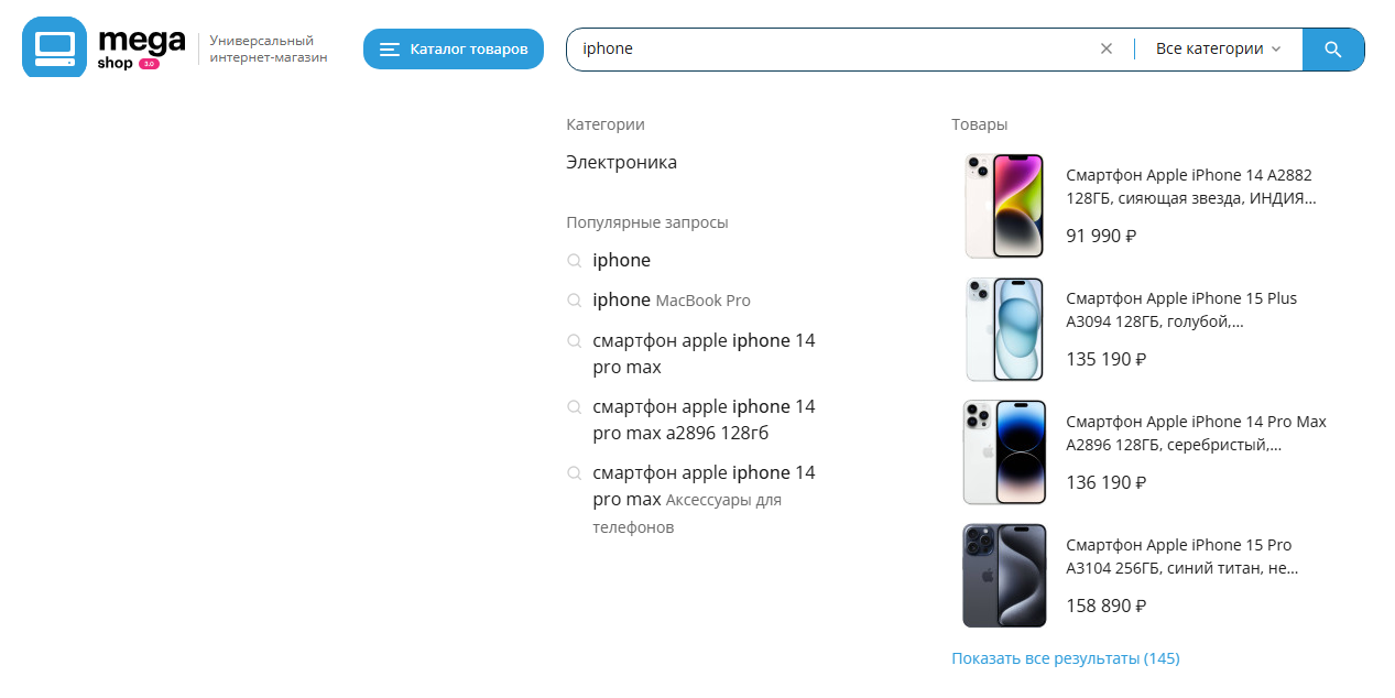 Введен поисковый запрос (режим отображения результатов подсказок):