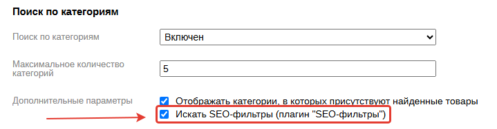 Включение индексации поиска на созданные страницы через плагин "SEO-фильтры" (при наличии плагина), найденные страницы подмешиваются вместе с категориями в поисковых подсказках.